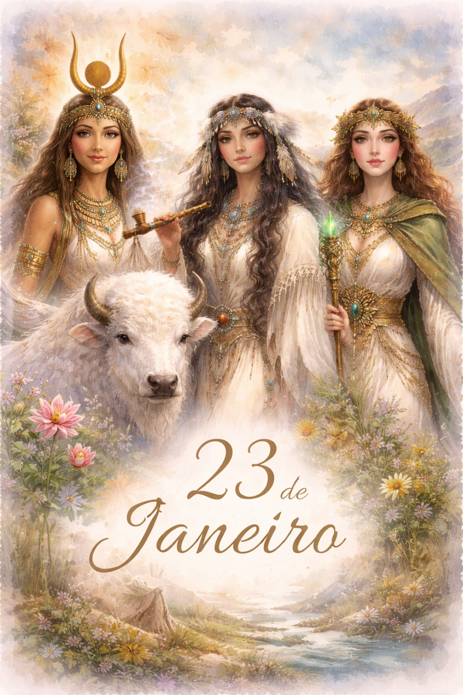 No dia 23 de janeiro, o feminino ancestral se manifesta em múltiplas faces, convidando-nos a um mergulho profundo na alegria consciente, no pertencimento e na reverência à Terra.