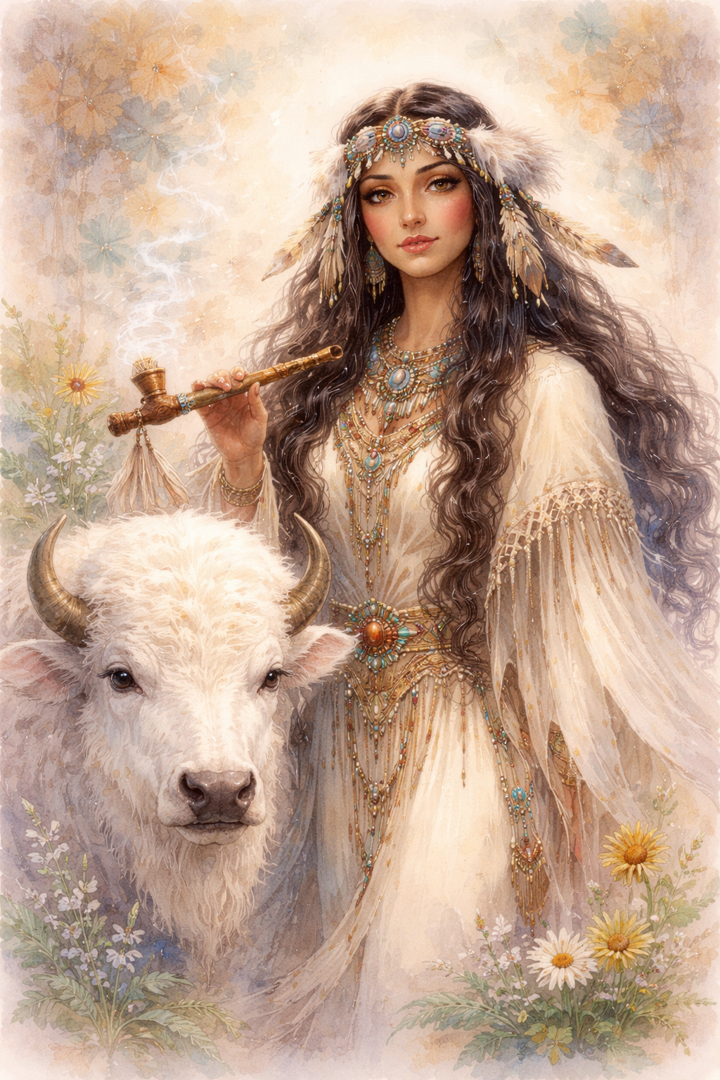 Uma das mais sagradas mensageiras espirituais dos povos Lakota e de outras nações indígenas das planícies. Sua presença não pertence apenas ao passado: ela caminha entre mundos, trazendo lembrança, cura e reconciliação.